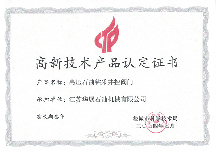 | 高新技術產品認定證書 |